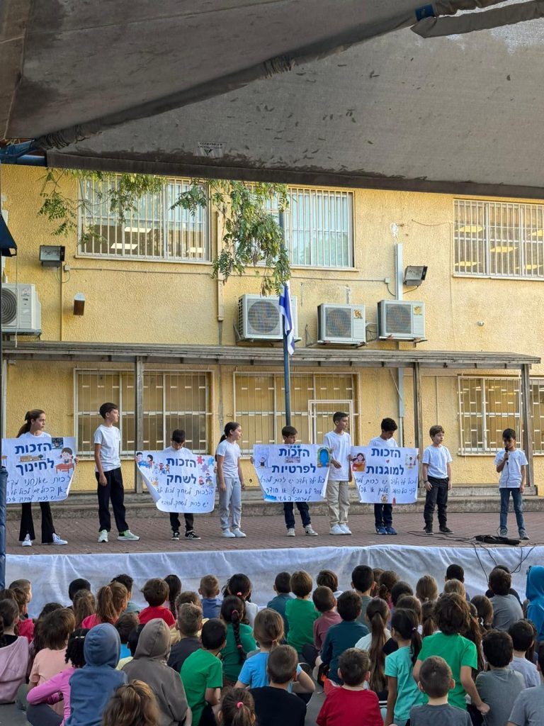 במסגרת שבוע זכויות הילד פתחנו את השבוע בזכות החשובה: הזכות לפנאי!תלמידי בית הספר נהנו מהפנינג משחקי עץ מאתגרים. הילדים שיתפו פעולה, מימשו את זכותם לפנאי, והפגינו כבוד ואחריות כלפי חבריהם והציוד.כמו כן, התקיימו בכיתות שיעורים ייעודיים על הזכויות השונות. הילדים למדו כי לצד כל זכות, כמו ביטחון, שייכות, למידה והבעה, קיימת גם אחריות אישית של כל אחד ואחת ליצירת סביבה מכבדת ובטוחה.בשיאו של השבוע נערך טקס חגיגי בהובלת מועצת התלמידים היוצאת והנכנסת. התלמידים הציגו את נושא זכויות הילד באופן ברור ומרשים והציגו את החשיבות בקיום הזכויות.